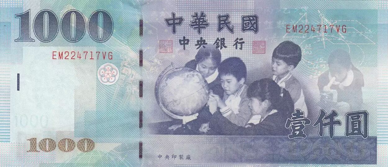 Billet Taïwan 1000 Nouveaux dollars - Enfants - Faisans - 1999 - P.1994