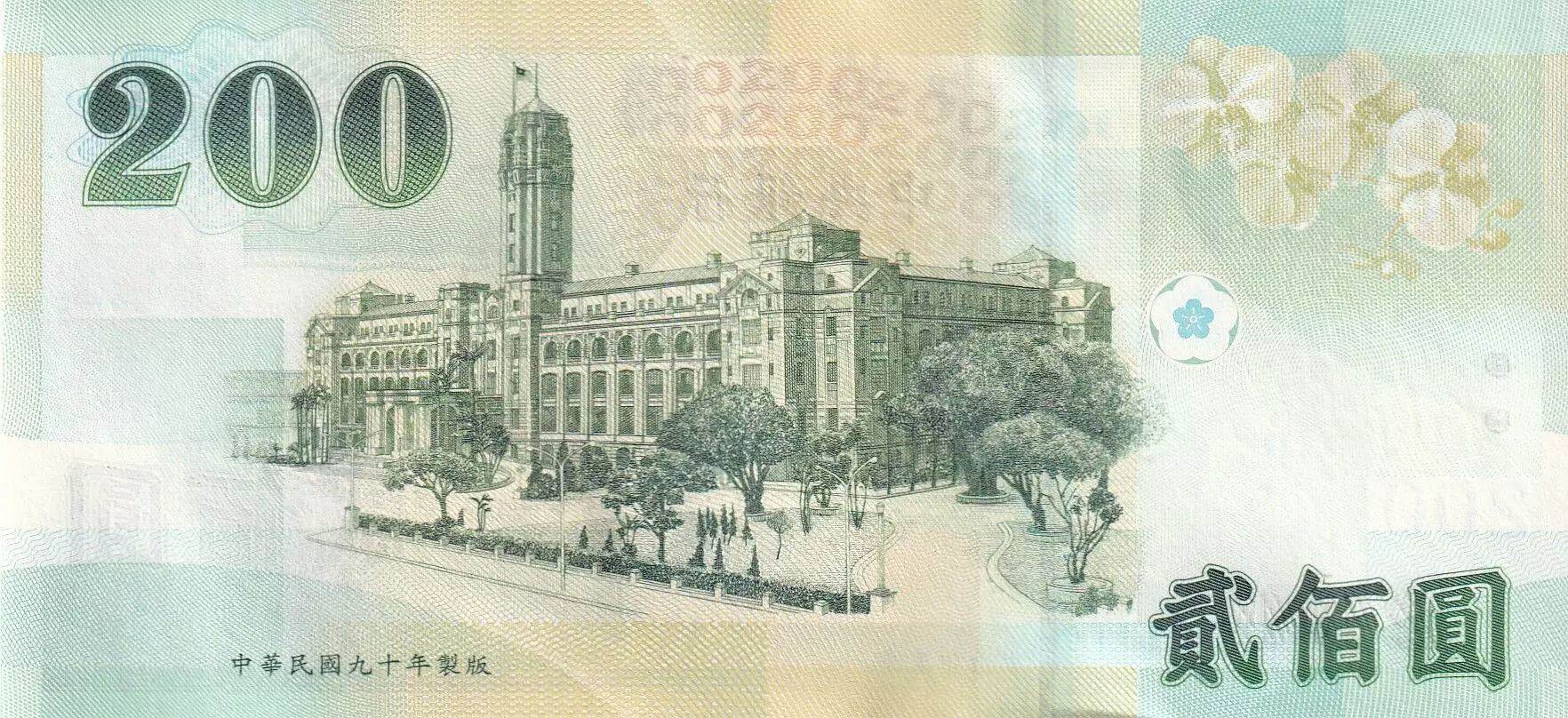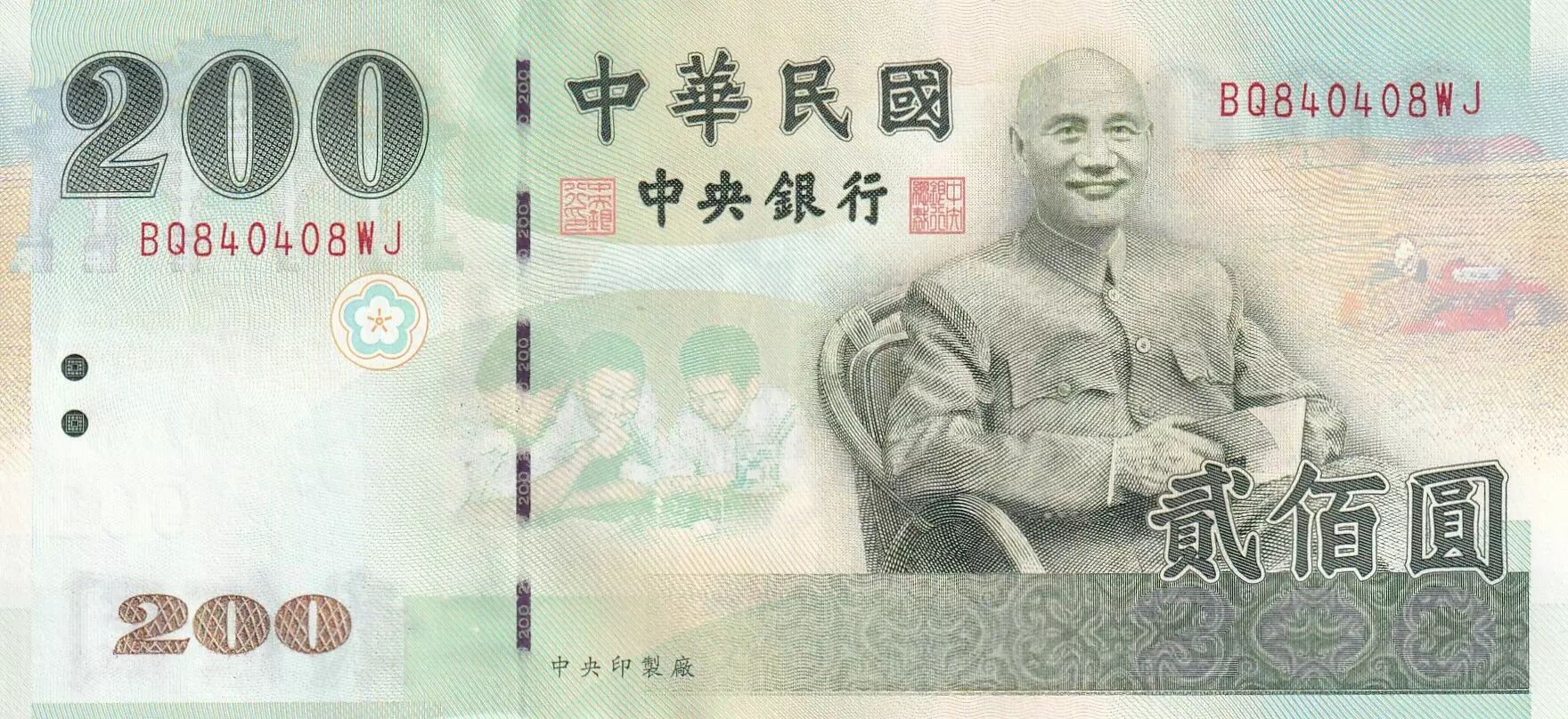 Home > World Banknotes > Asian Banknotes > Taiwan > Taiwan 200 Dollars - Tchang Kai-chek - Palace president - 2001 - P.1992