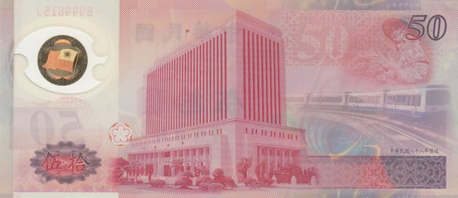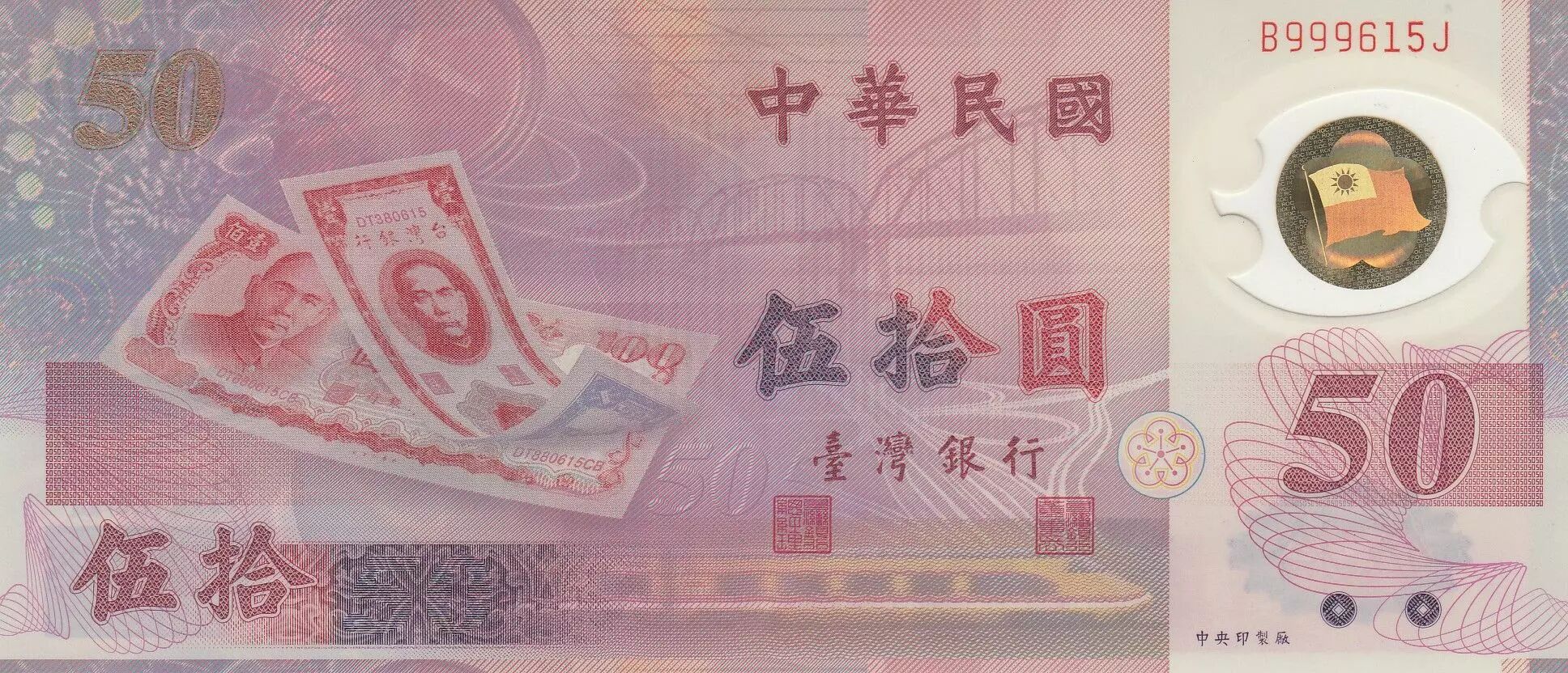 Accueil > Billets du Monde > Billets d'Asie > Taïwan > Taïwan 50 yuan - Nouveau dollar Taïwan - 1999 - Polymer - Série B