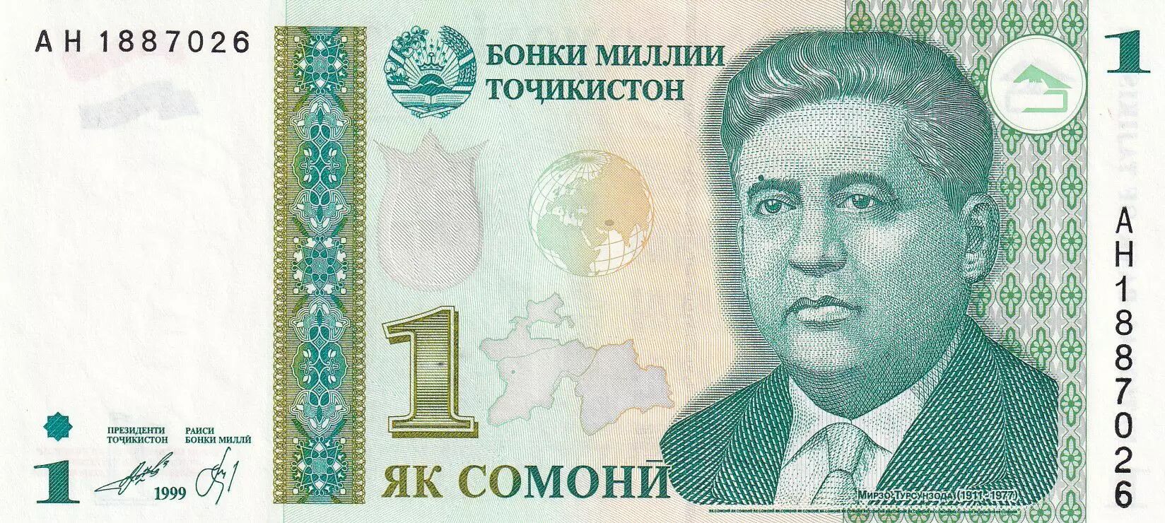 Banknote Tajikistan 1 Somoni - Mirzo Tursunzoda - 1999 - P.14