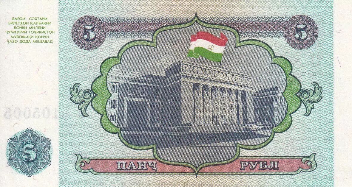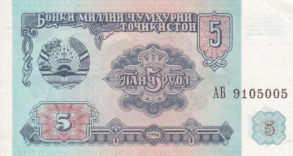 Home > > Tajikistan 5 Rubles - 1994 - P.2