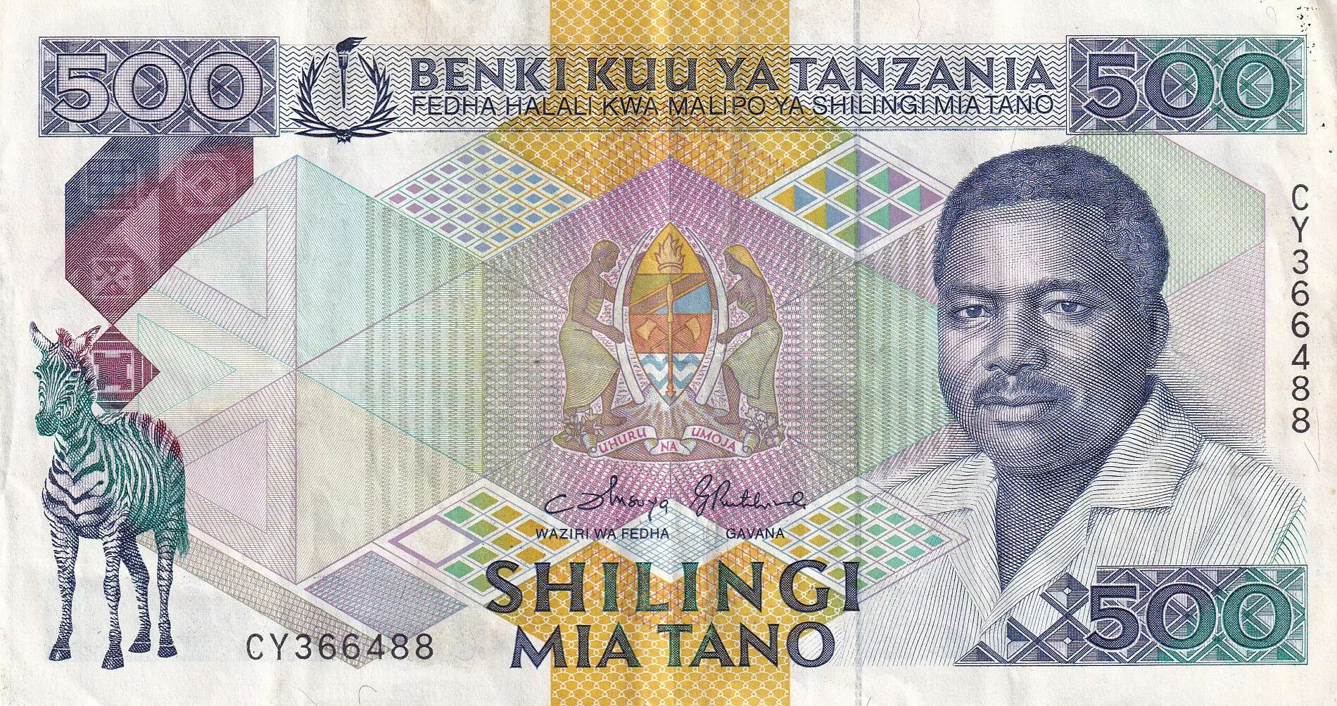 Home > > Tanzania 500 Schillingi - President Mwinyi - ND (1993) - P.26a