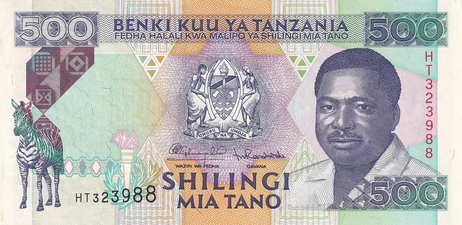 Banknote Tanzania 500 Schillingi - President Mwinyi - ND (1993) - Serial HT - P.26b
