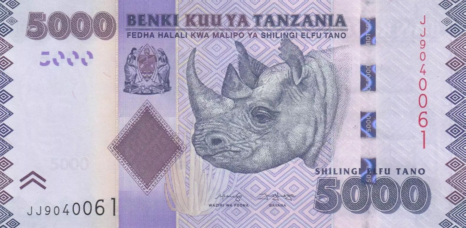 Banknote Tanzania 5000 Schillingi Rhinoceros - Mining - 2020