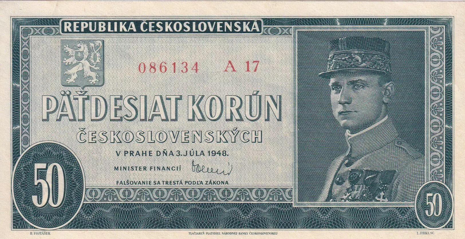 Accueil > Archivage > Tchécoslovaquie 50 Korun - Gen Milan R. Stefanik - Paysage - 03-07-1948 - Série A.17 - P.66