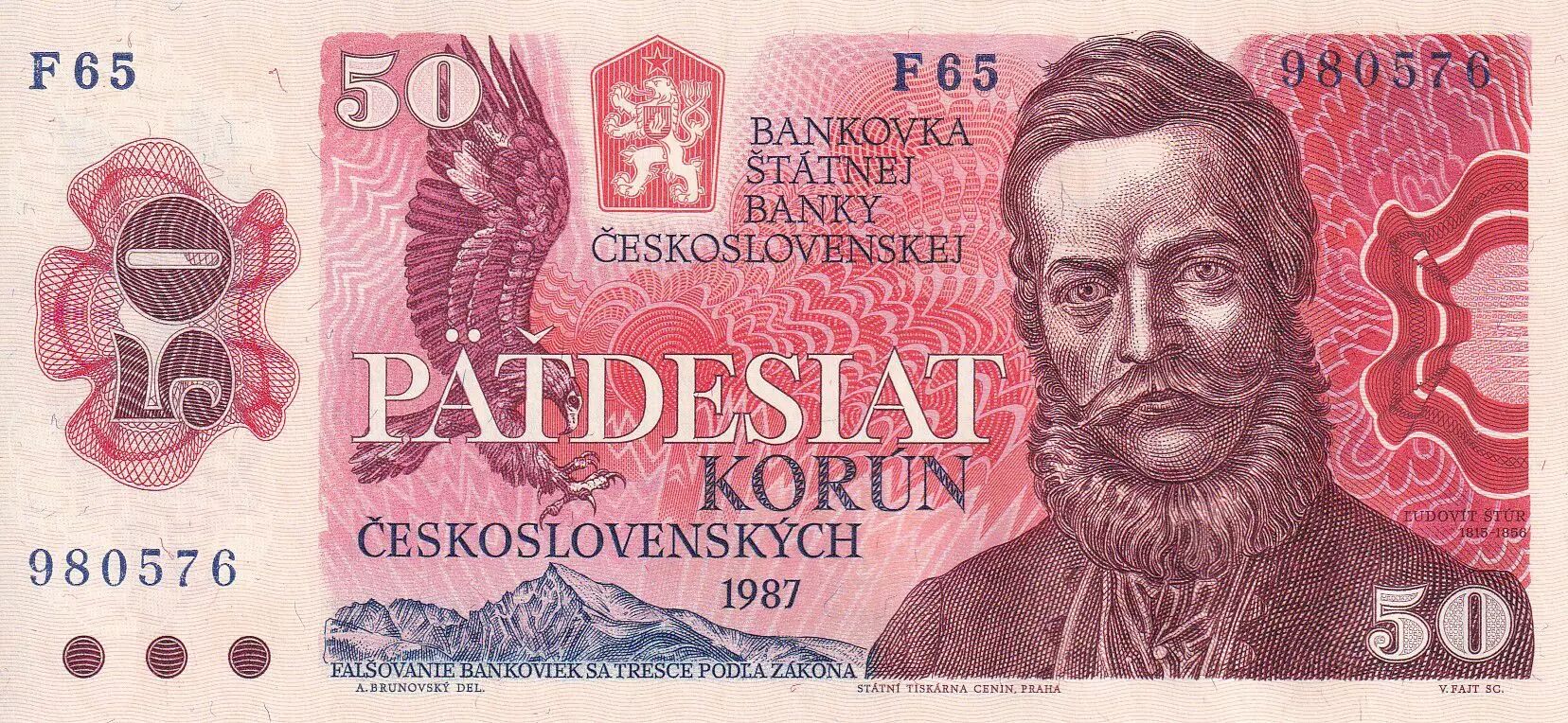 Accueil > Archivage > archivage-Billets du Monde > Tchécoslovaquie 50 Korun - Ludovit Stur - Paysage - 1987 - Série F.65 - P.96a
