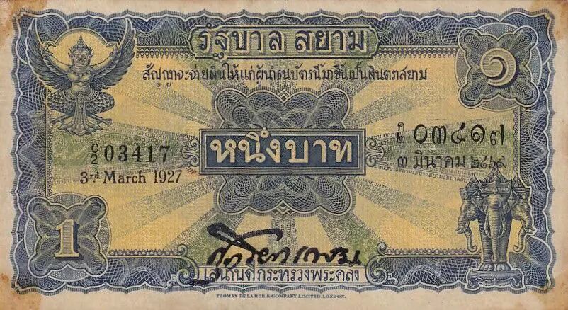Banknote Thailand 1 Baht - Procession - 03-03-1927 Serial C2