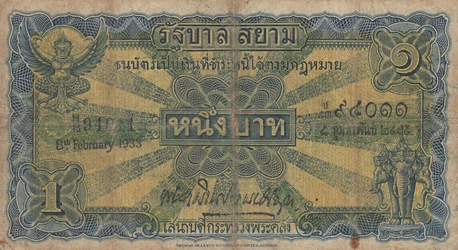 Home > > Thailand 1 Baht - Procession - 08-02-1933 Serial H.13 - P.16b