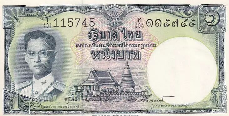 Home > World Banknotes > Asian Banknotes > Thailand > Thailand 1 Bath Rama VIII - 1955 - Serial T 401