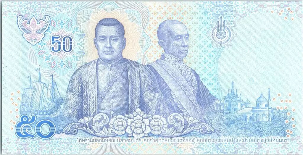 Banknote Thailand 50 Baht Rama X, Rama III and IV - 2018