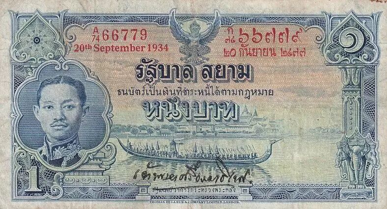 Billet Thaïlande 1 Baht Roi Rama VII - 20-09-1934 - Série A74
