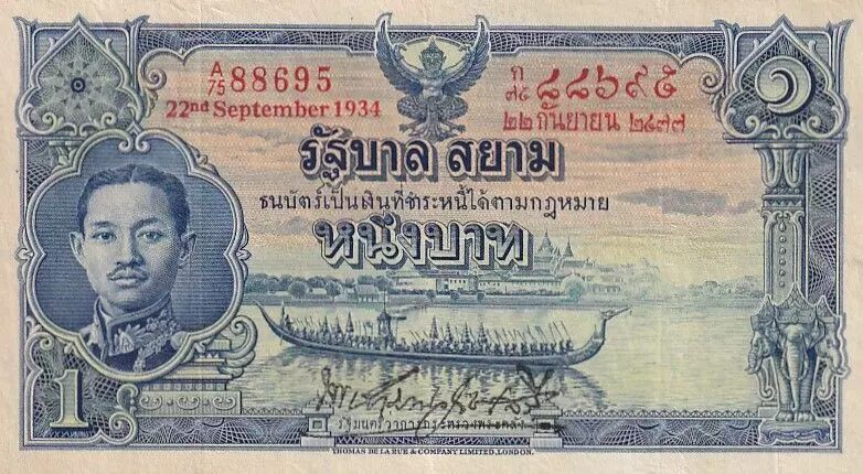 Billet Thaïlande 1 Baht Roi Rama VII - 22-09-1934 - Série A75