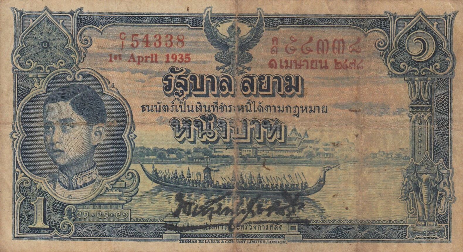 Voici une fiche descriptive du billet de 1 baht émis en Thaïlande en 1935, série C1 :