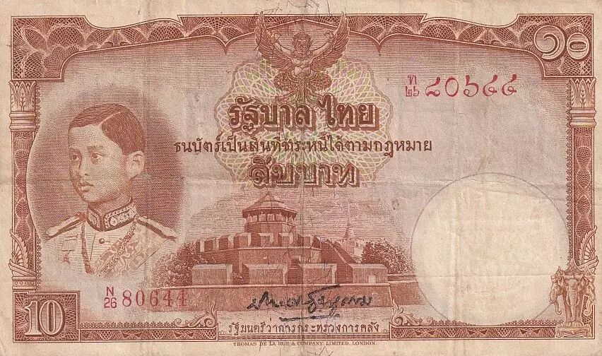 Billet Thaïlande 10 Baht Roi Rama VIII - ND (1939) - Série N.26