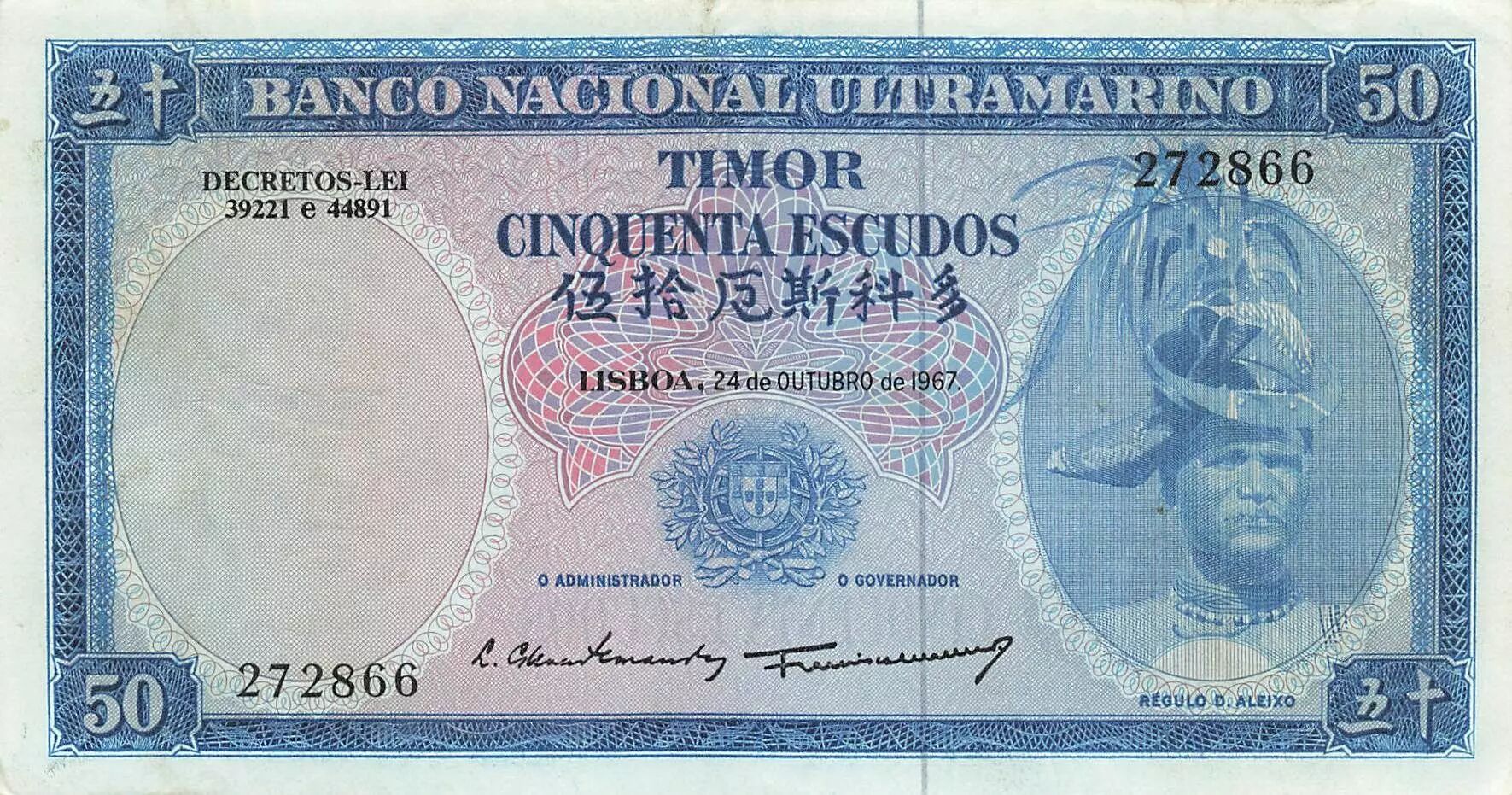 Billet Timor 50 Escudos - Timor - Regulo D. Aleixo - 25-10-1967 - P.27