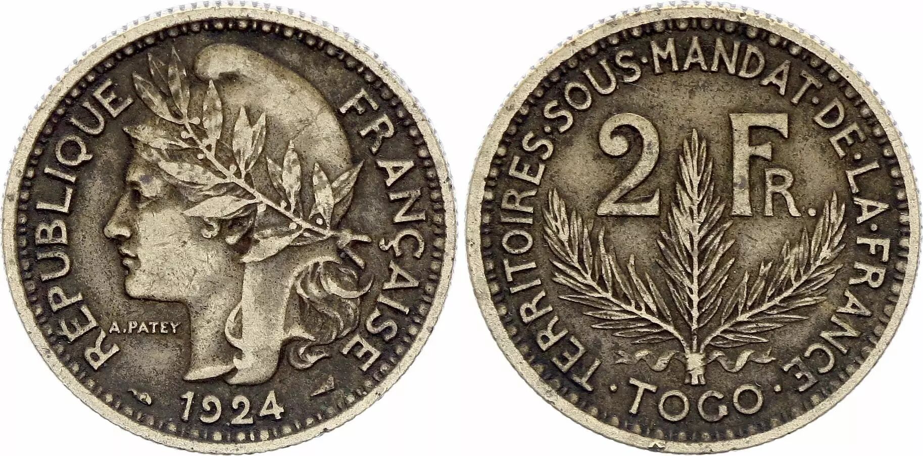 Home > > Togo 2 Francs Territoire sous Mandat - Patey - 1924