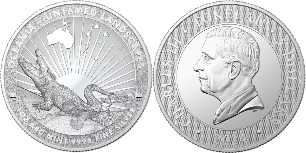 Pièce Tokelau 5 Dollars - Crocodile Tokelau - Argent 2024