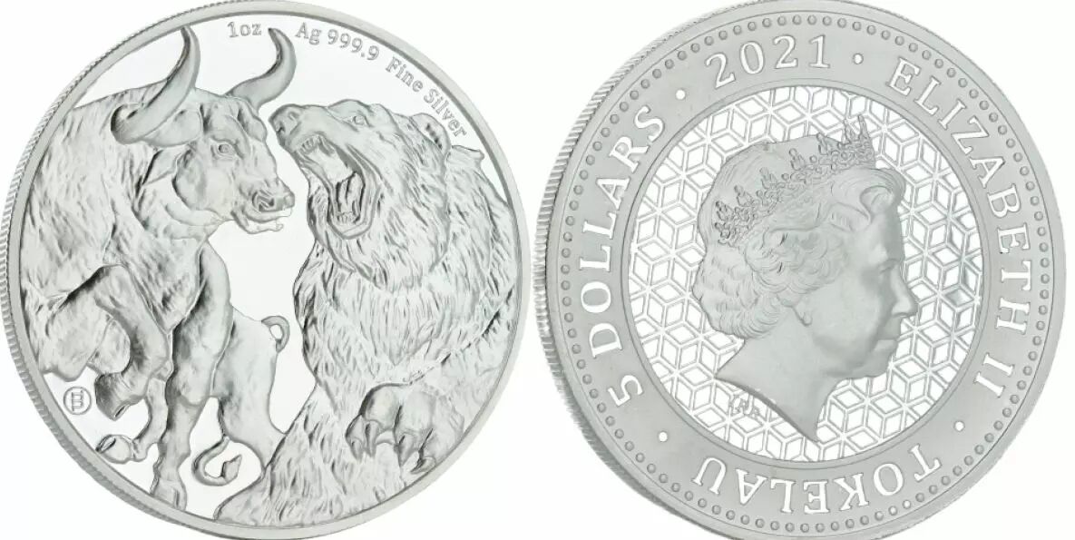 Coin Tokelau 5 Dollars Elizabeth II - Bull and Bear - 2021 Oz Silver