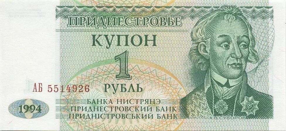 Banknote Transnestria 1 Rouble - A. V. Souvorov - Parliament - 1994 - UNC - P.16