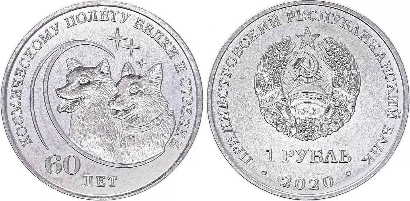 Pièce Transnistrie 1 Rouble - 60 ans du Vol Spacial Belka et Streka - 2020 - SPL