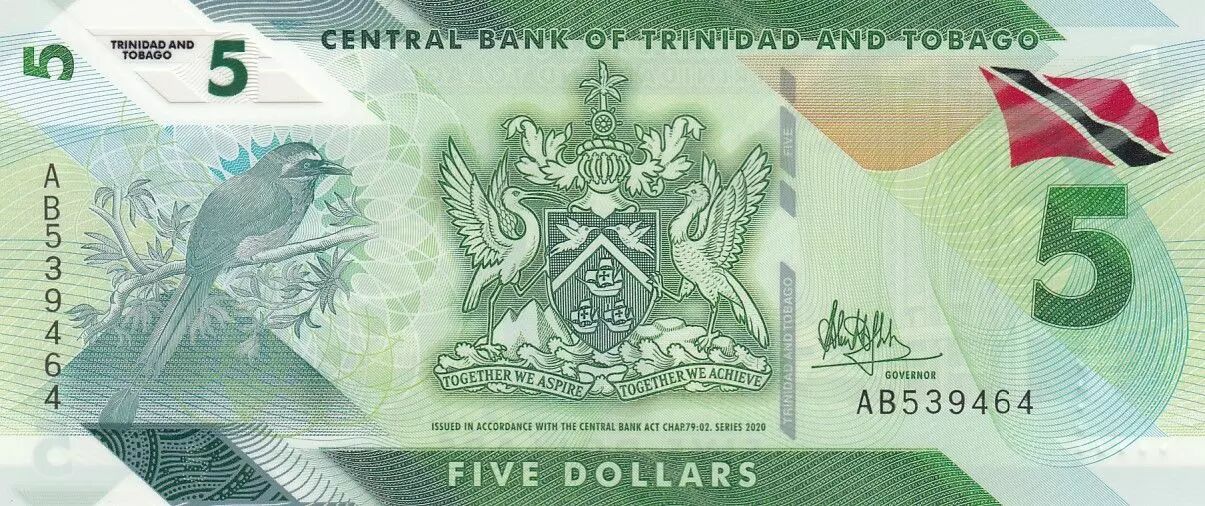 Home > > Trinidad and Tobago 5 Dollars - Bird - Building - 2020 - W.64a
