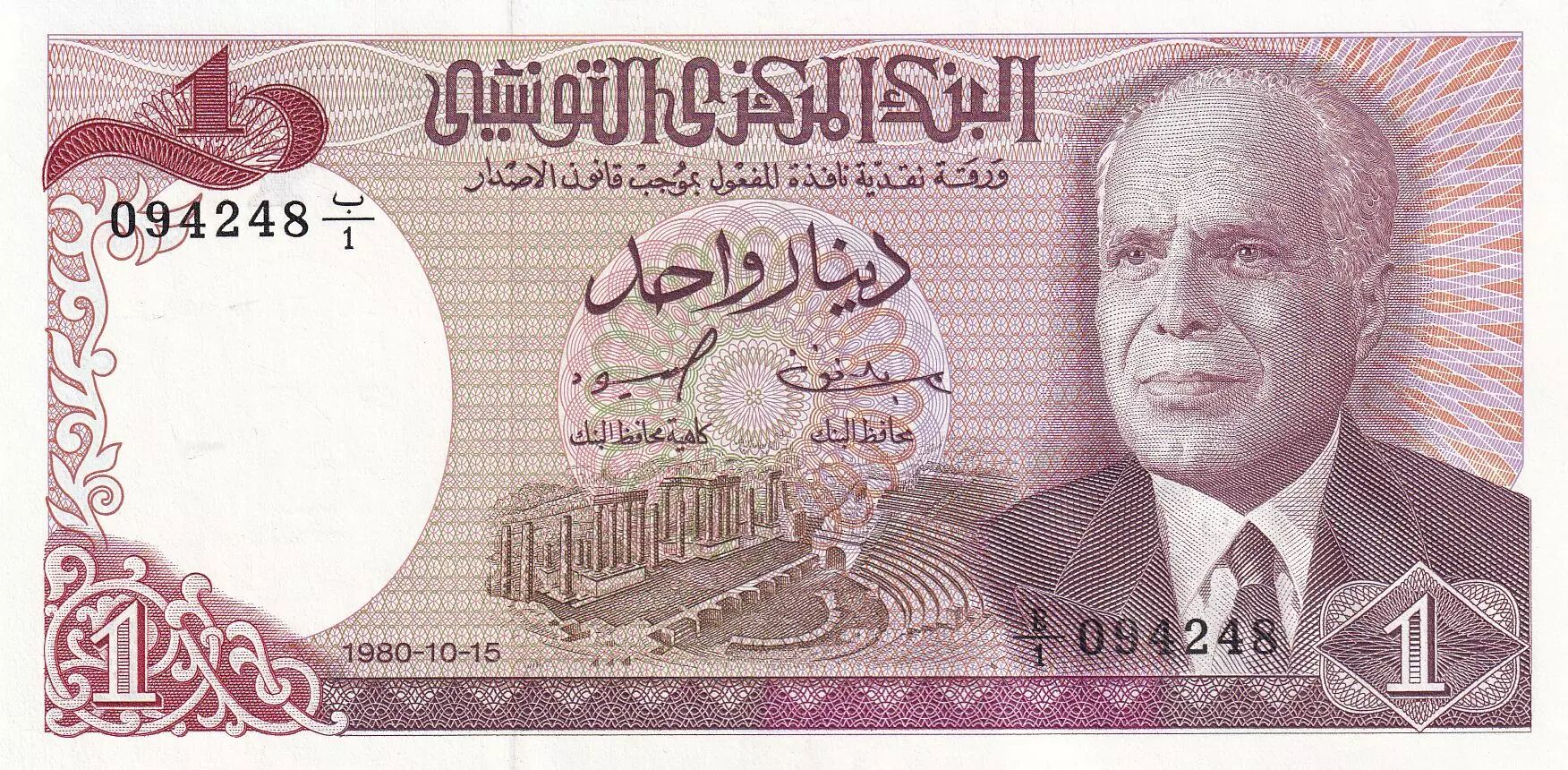 Banknote Tunisia 1 Dinar - Habib Bourguiba - 1980 - P.74