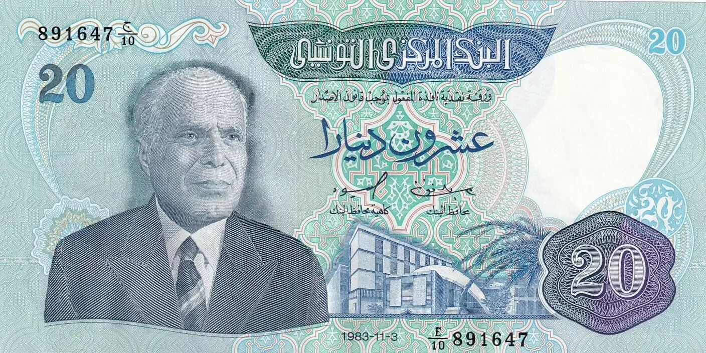 Banknote Tunisia 20 Dinars - Habib Bourguiba - Marina - Serial E.1 - 1983 - P.81