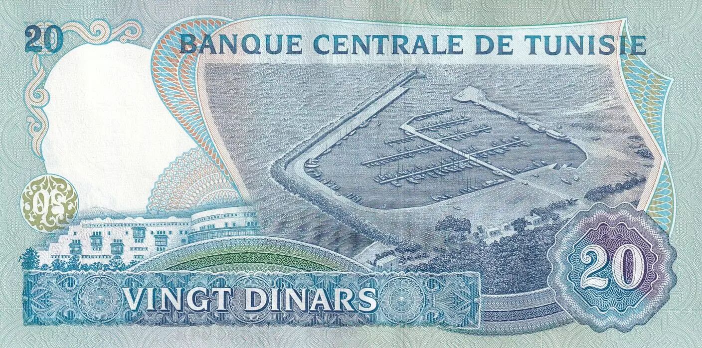 Home > World Banknotes > African Banknotes > Tunisia > Tunisia 20 Dinars - Habib Bourguiba - Marina - Serial E.1 - 1983 - P.81
