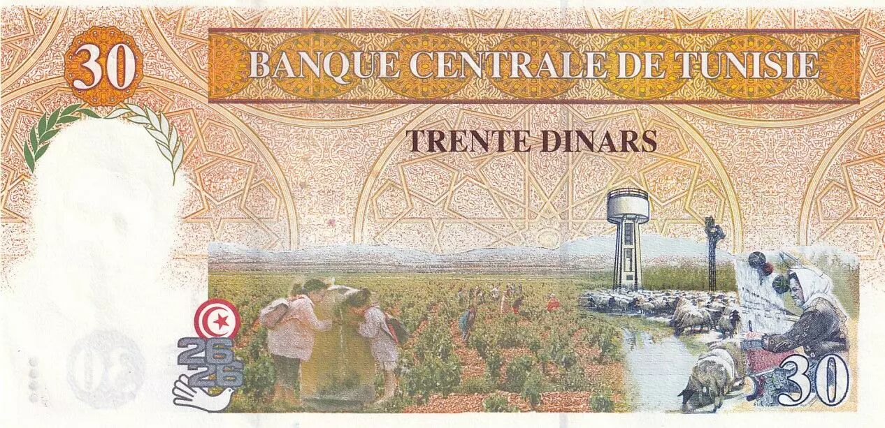 Banknote Tunisia 30 Dinars - Abou El Kacem Chebbi - Serial F.5 - 1997