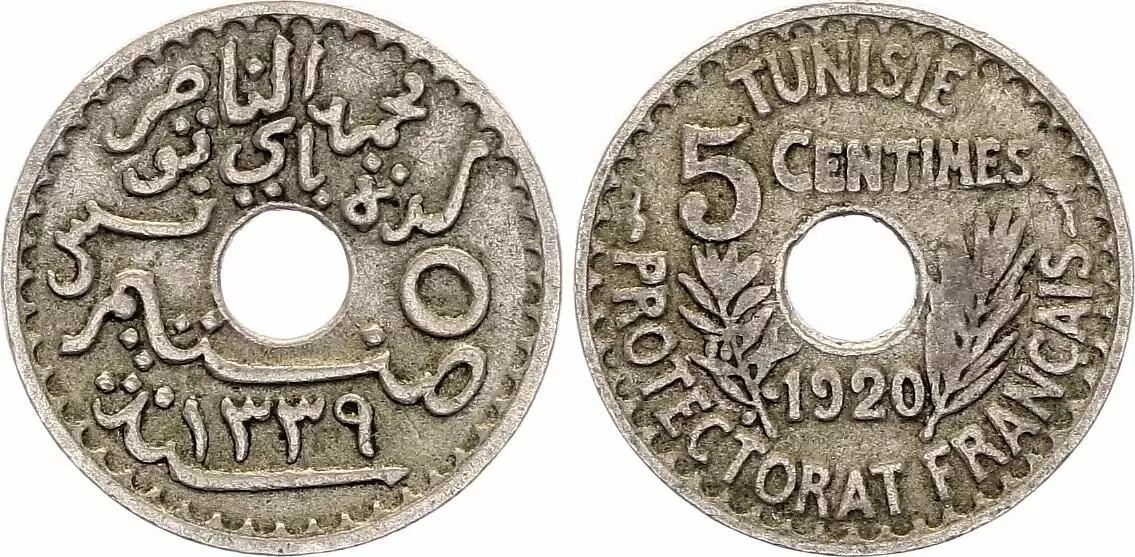 Home > > Tunisia 5 Centimes French Protectorate - 1338 (1920) - Medal Strike