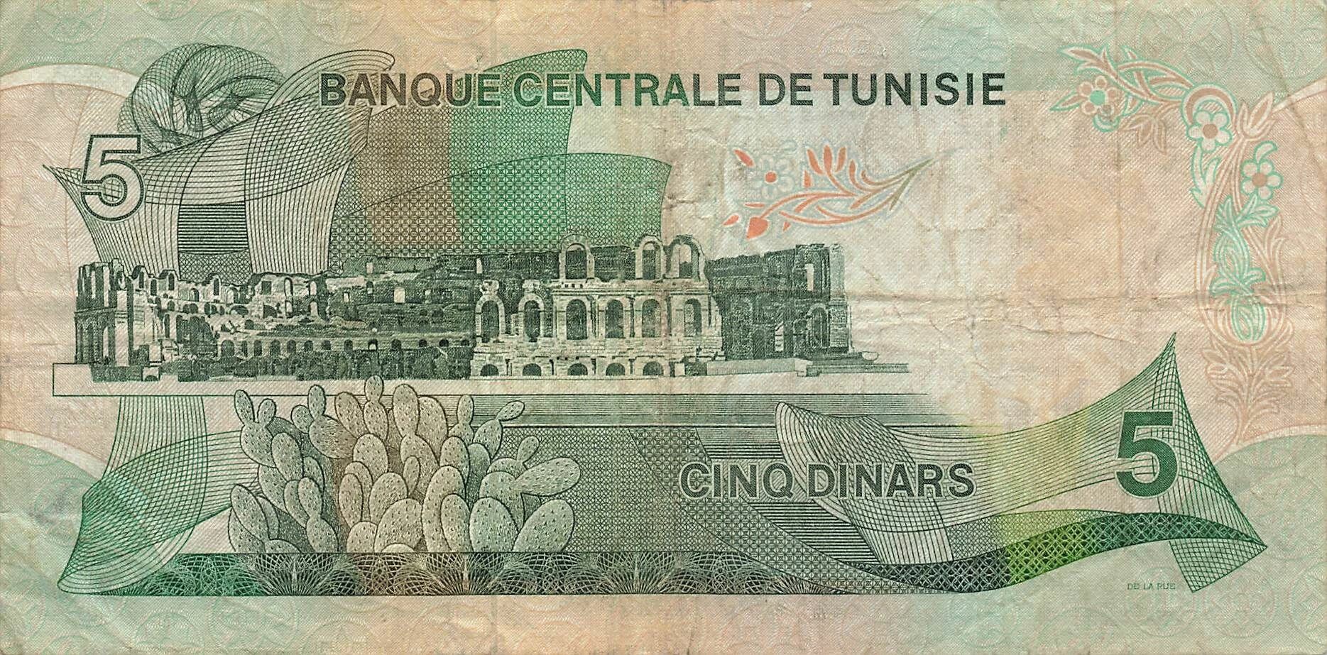 Home > World Banknotes > African Banknotes > Tunisia > Tunisia 5 Dinars - 03-08-1972 - Replacement - P.68