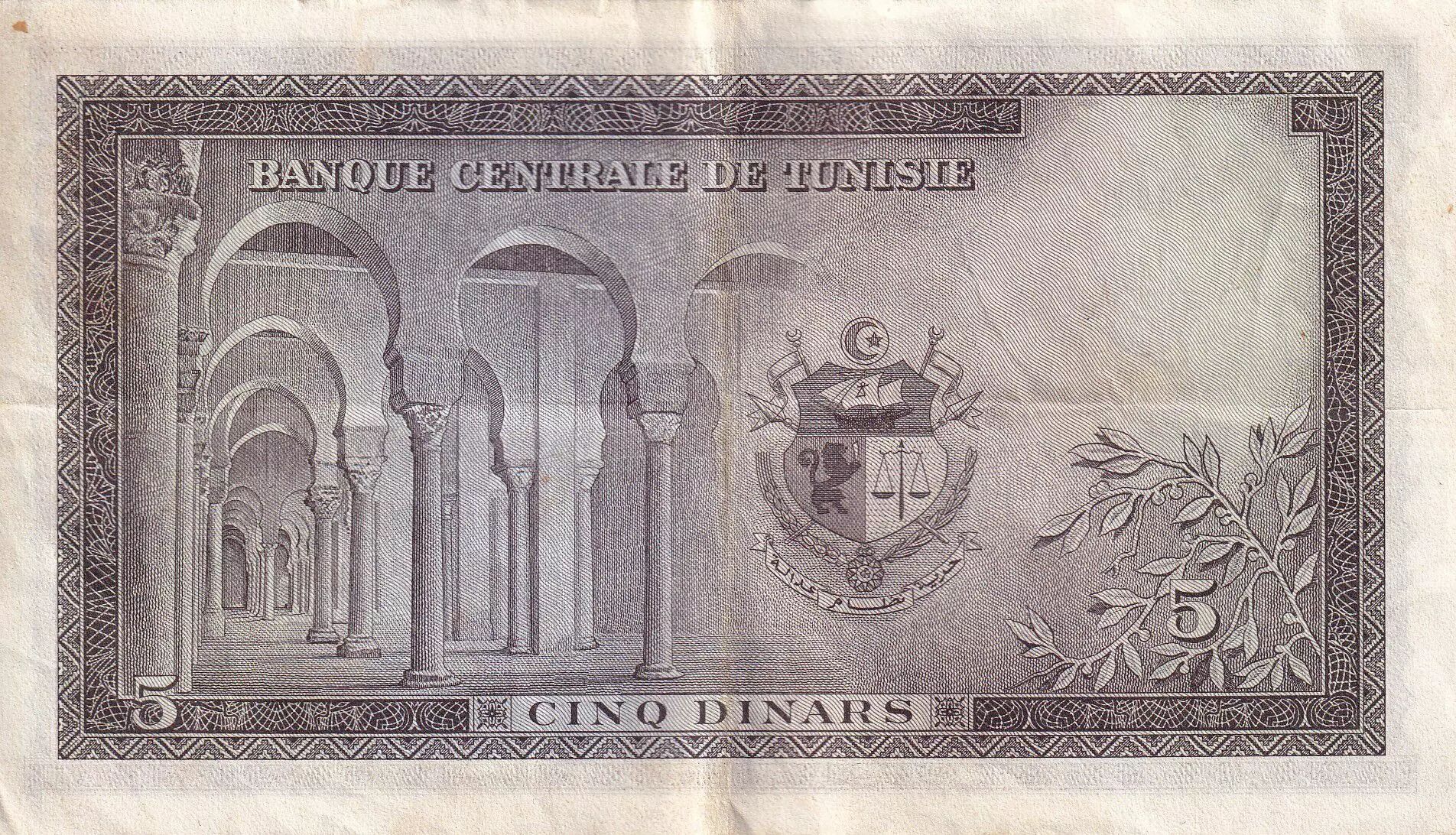 Home > World Banknotes > African Banknotes > Tunisia > Tunisia 5 Dinars - H. Bourguiba - Bridge - ark - 1958 - Serial C.4 - P.59