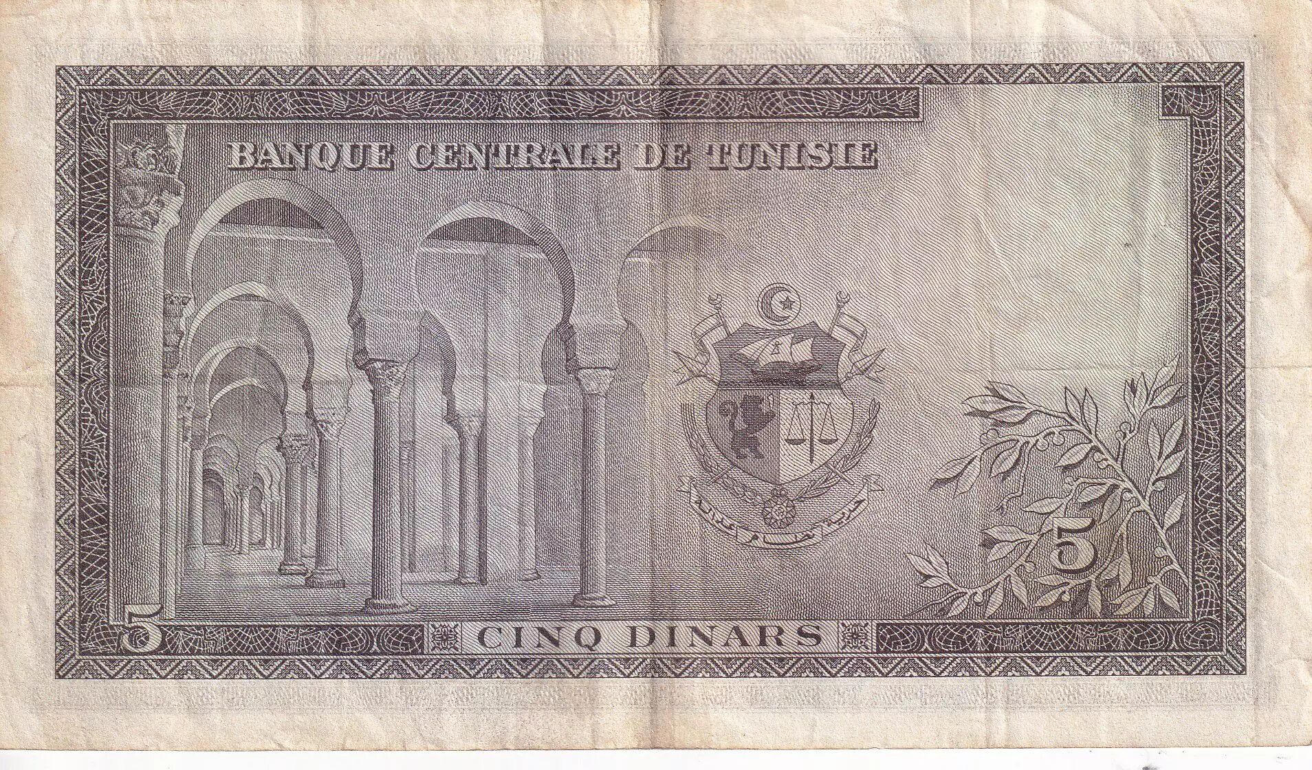 Home > > Tunisia 5 Dinars - H. Bourguiba - Bridge - ark - 1958 - Serial C.6 - P.59