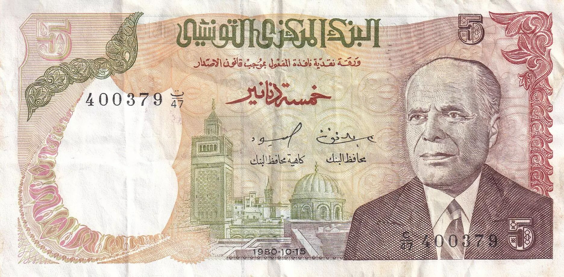 Home > > Tunisia 5 Dinars - Habib Bouguiba - Mountain - 1980 - Serial C.47- P.75