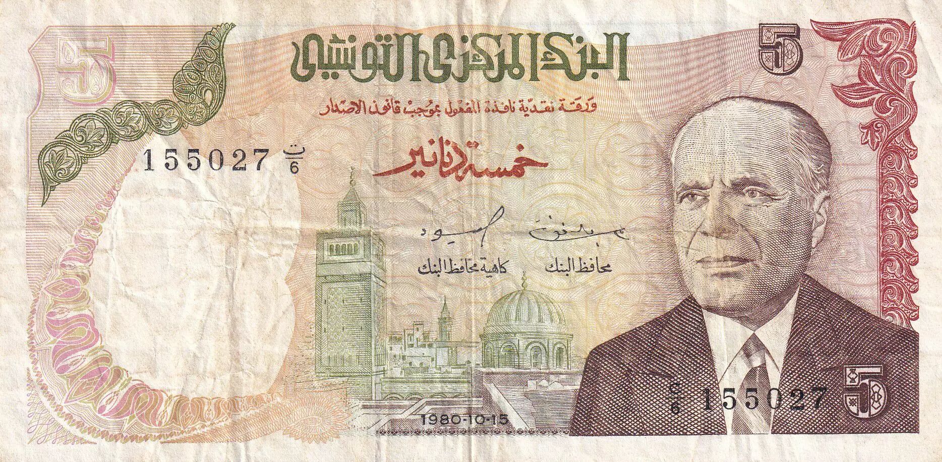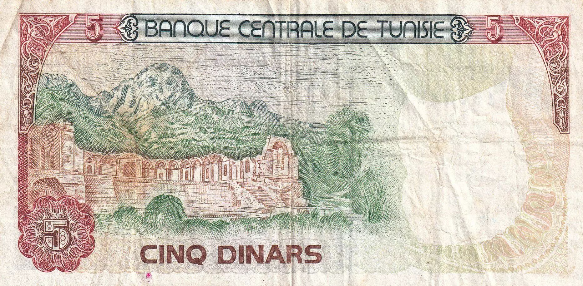 Banknote Tunisia 5 Dinars - Habib Bouguiba - Mountain - 1980 - Serial C.6 - P.75