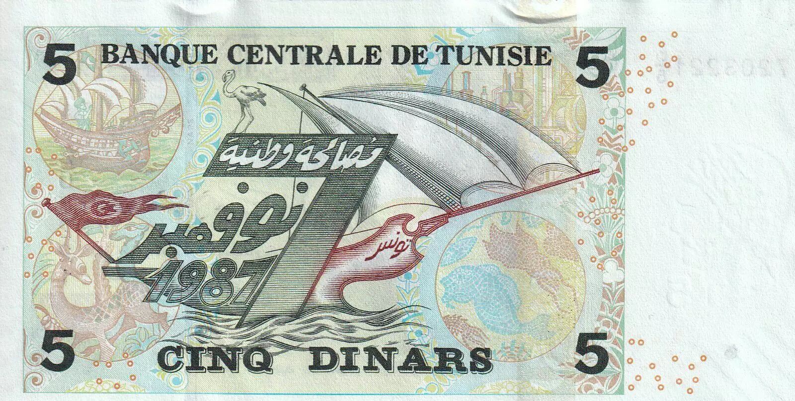Home > World Banknotes > African Banknotes > Tunisia > Tunisia 5 Dinars - Hannibal - Carthaginians ships - 2008 - P.92
