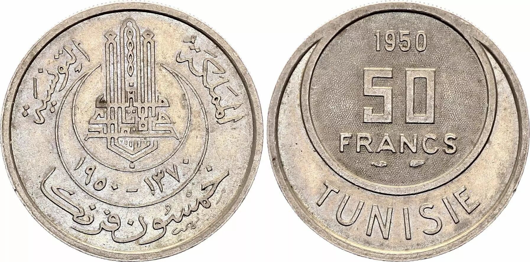 Coin Tunisia 50 Francs French Protectorate - 1370 (1950)