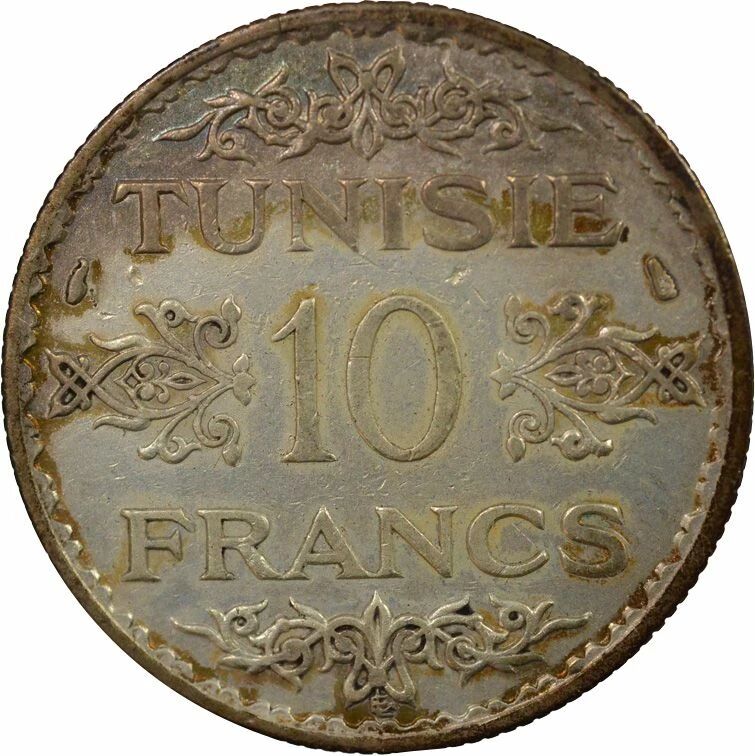 Home > World Coins > African Coins > Tunisia > Tunisia French Protectorate, Ahmad II - 10 Silver Francs - 1939 Paris