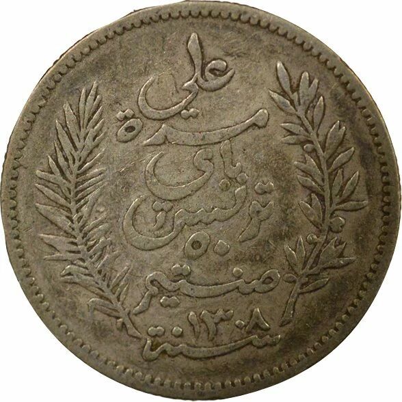 Home > World Coins > African Coins > Tunisia > Tunisia French Protectorate, Ali III - 50 Silver Centimes - 1891 A Paris