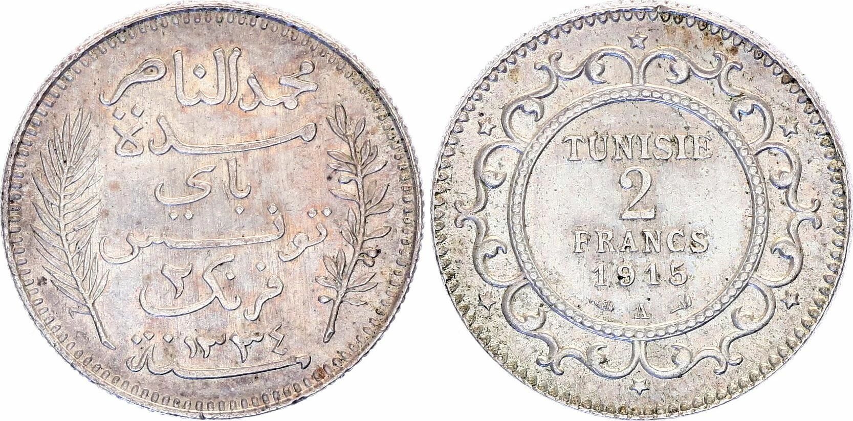 Home > World Coins > African Coins > Tunisia > Tunisia French Protectorate, Muhammad V - 2 Silver Francs - 1916 A Paris
