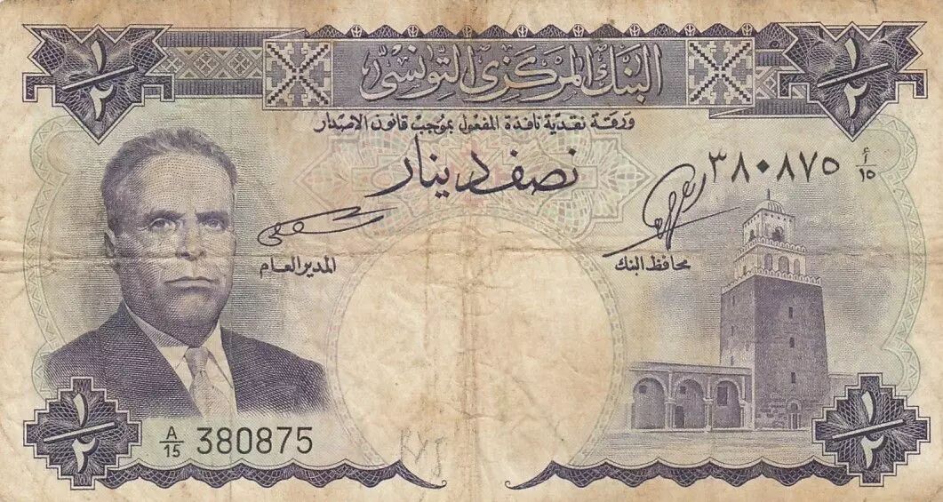 Billet Tunisie 1/2 Dinar - H. Bouguiba - Temple - Série A/15 - 1958