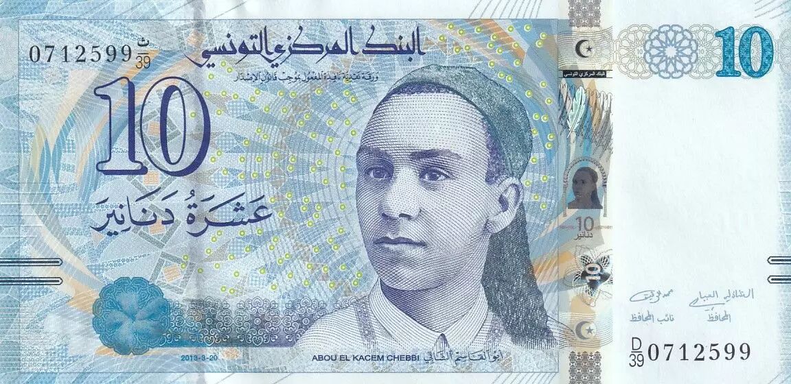 Billet Tunisie 10 Dinars - Abou El Kacem Chebbi - Série D.39 - 2013 - P.96