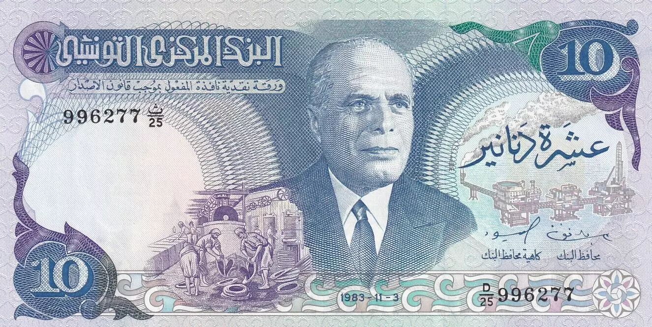 Billet Tunisie 10 Dinars - Habib Bourguiba - Banque centrale - Série D.25 - 1983