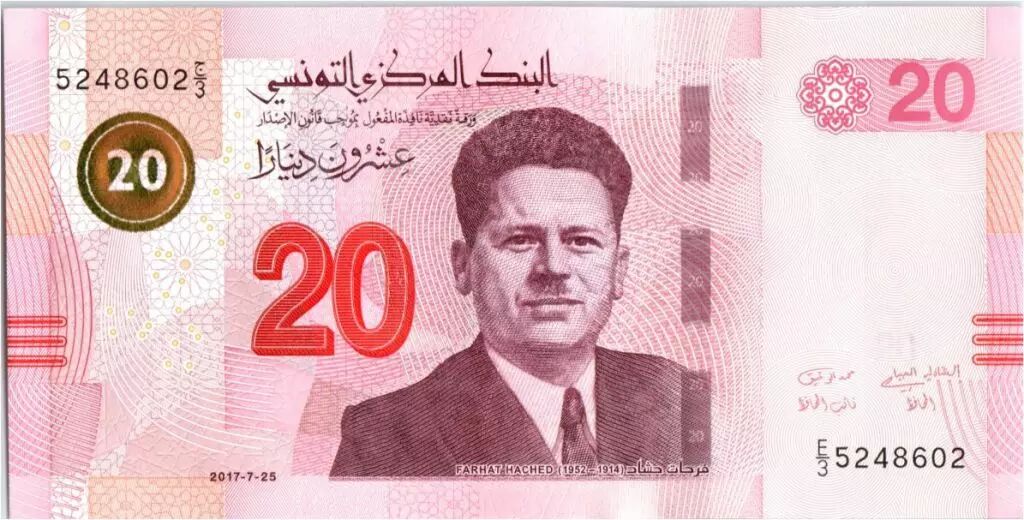 Billet Tunisie 20 Dinars Farhat Hached - Amphithéâtre El Jem - 2017 (2018) - Neuf
