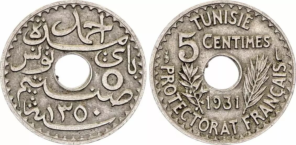 Pièce Tunisie 5 Centimes Protectorat Français - 1350 (1931)