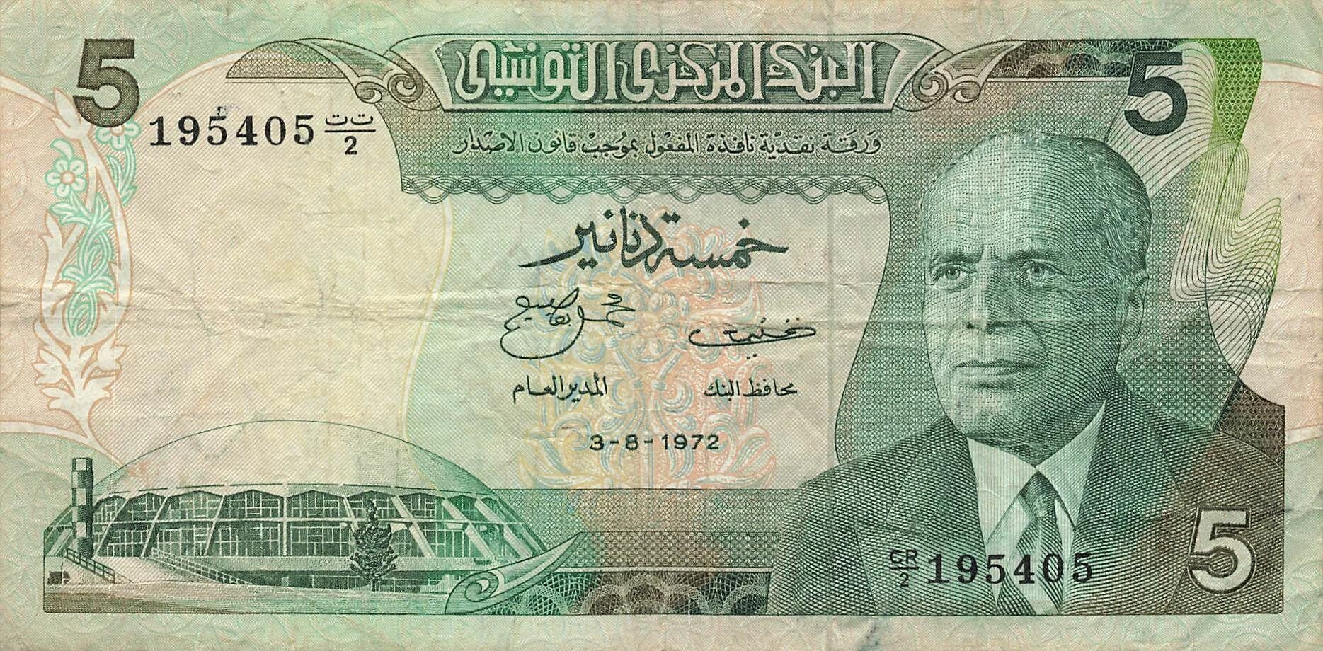 Billet Tunisie 5 Dinars - 03-08-1972 - Remplacement - P.68
