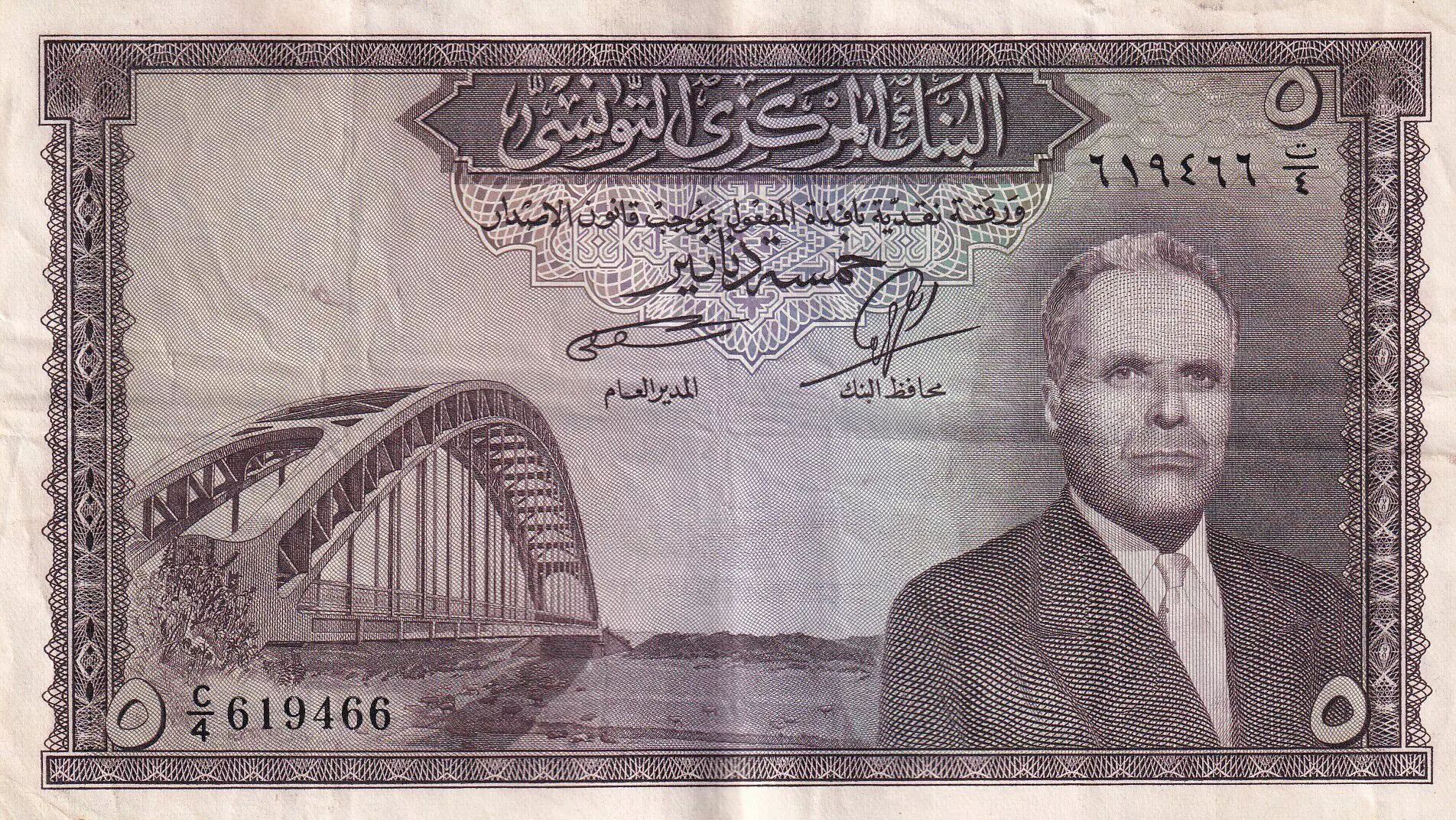 Billet Tunisie 5 Dinars - H. Bourguiba - Pont - Arches - 1958 - Série C.4 - P.59