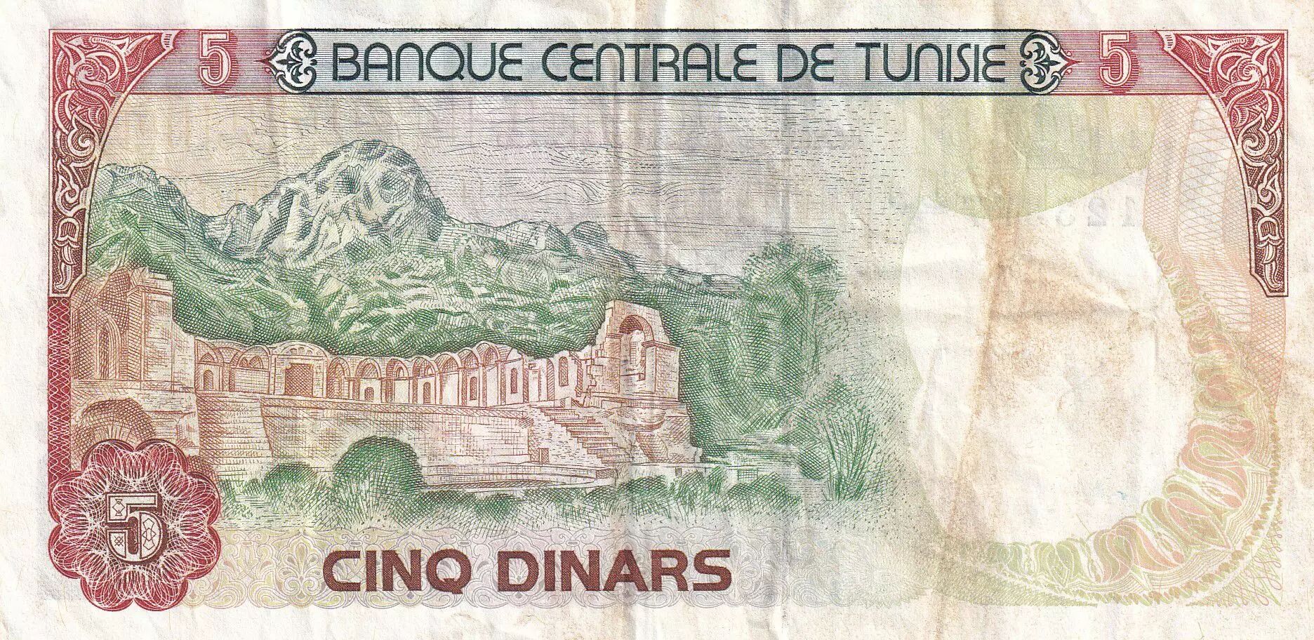 Billet Tunisie 5 Dinars - Habib Bouguiba - Montage - 1980 - Série CR.2 - P.75