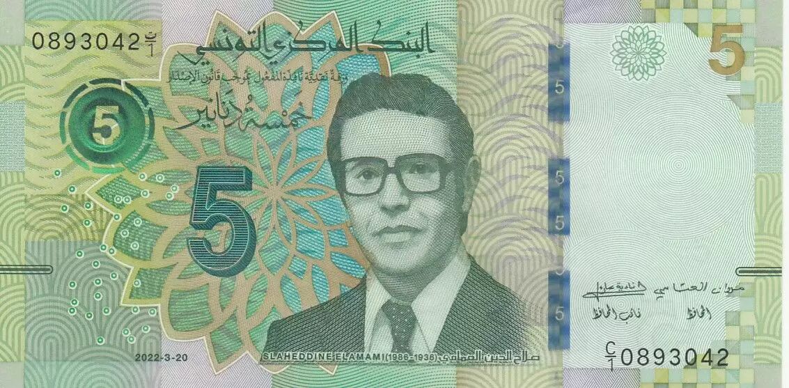 Billet Tunisie 5 Dinars - Slaheddine El Amam - 2022