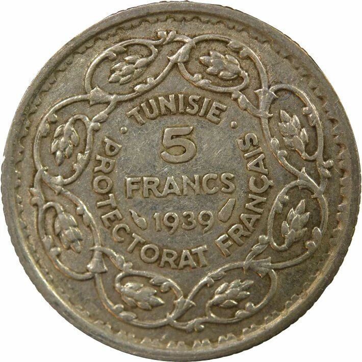 Accueil > Archivage > archivage-Monnaies du monde > Tunisie Protectorat, Ahmad II - 5 Francs Argent - 1939 Paris